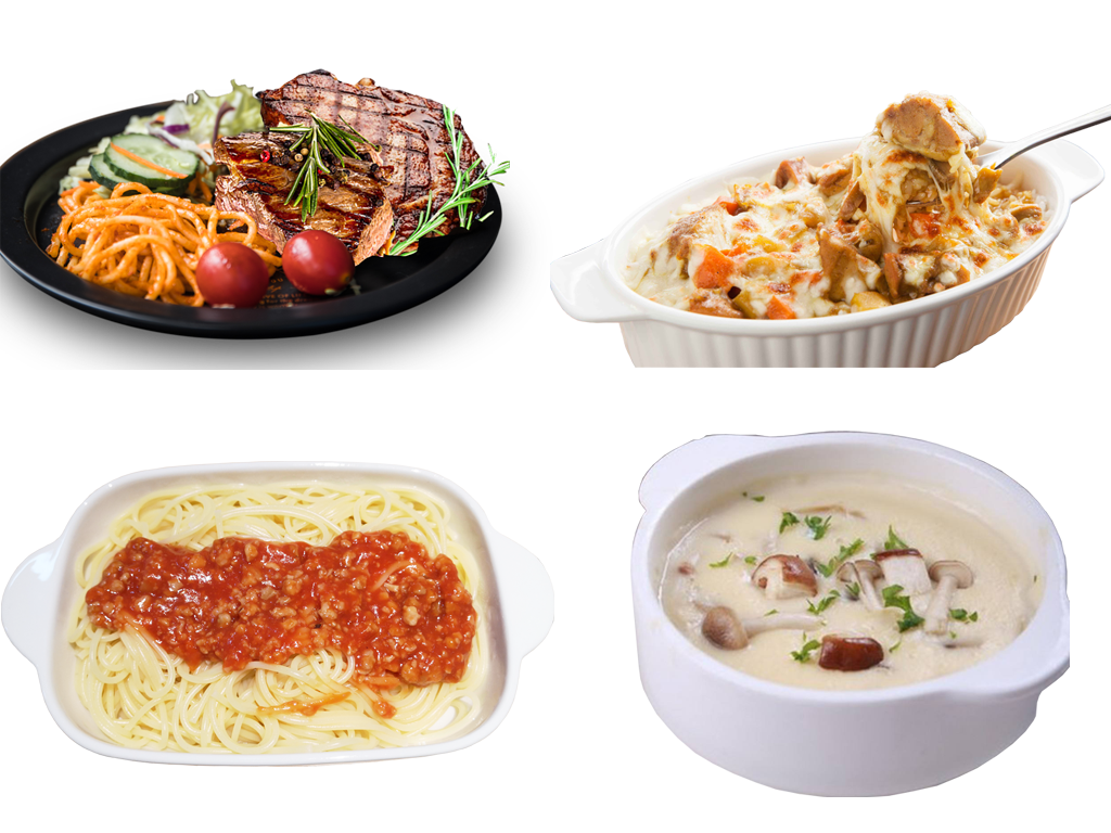 我们拥有包括牛排、意面、焗饭等20余款同类商品在售,这些商品均是我们独立研发、自主安全生产的商品。